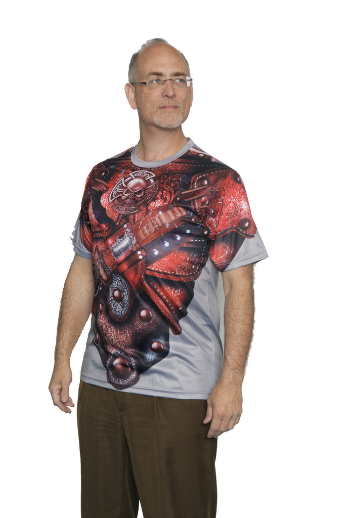 Your print will cover the entire t-shirt / The backside will be either white or black backed, your choice.